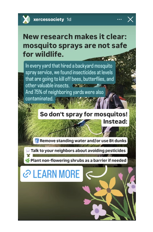 Information: on January 8, the Xerces Society for Invertebrate Conservation circulated a social media post about their research on mosquito sprays. Their graphic issues a reminder that they have established the toxicity and drift of these sprays, which deposit synthetic chemicals (pyrethroids) at levels up to many times stronger than the lethal dose for a bee. This number comes from their webinar last spring in which they discussed this research, condensed in this post and linked on our website, also here. This research study included three communities across the US, including Decatur, GA, where we are located, thanks for the tireless efforts of our local Bee City USA — Decatur, GA (Beecatur) and its chairperson, who is on the BB team. Here were the takeaways from their webinar for me: 1) sprayed/fogged pyrethroids are toxic to pollinators, not just when they are applied but as they linger 2) these chemicals more often than not drift into neighboring yards and 3) fences exacerbate the drift — the fog hits hard surfaces and rises, thus the recommendation for shrubs as barriers (yet, affecting pollinators on these strategic plants). Also, other research shows that sprays only eliminate about 10% of flying adult mosquitos at the time of application. If you are spraying, you are paying a lot of money to poison your yard; you are not controlling mosquitoes.