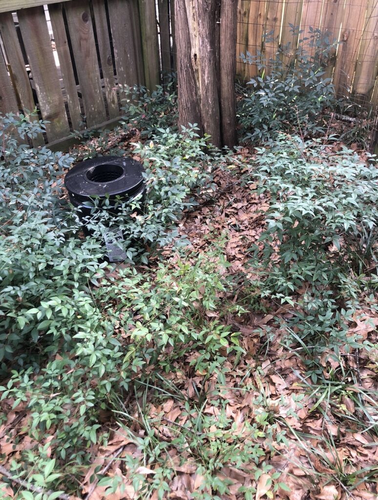 The locations of individual (and collective) buckets are important, and may require some trial-and-error decisions as you become more attentive to the mosquito activity in your yard/on your property. Typically, buckets work best when placed in areas where mosquitoes rest or breed — where they will hang out (shade) or search for water (vegetation, wood piles), for instance, under shrubbery and near downspouts. You also want to consider placing them around the perimeter of your property, especially if there are areas of dense growth in neighboring yards.