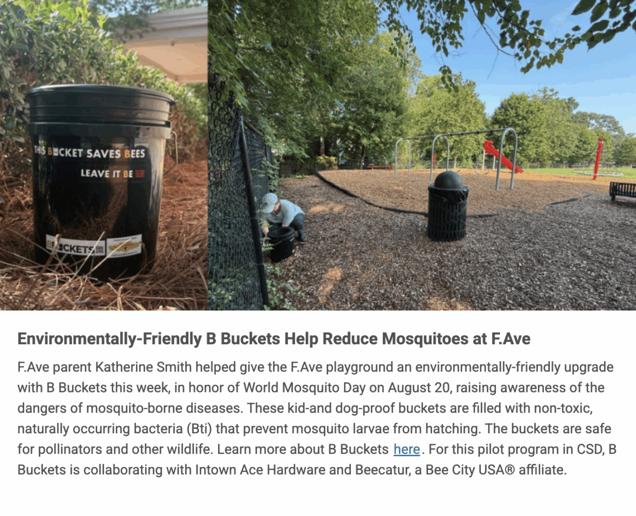“Environmentally-Friends B Buckets Help Reduce Mosquitoes at F.Ave